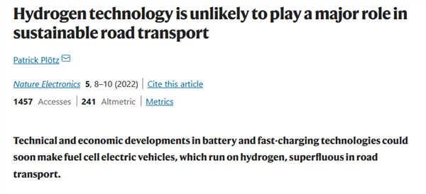 实际上去年初就有一篇研究就预告了丰田当下面临的窘境,彼时作者更是直接下结论称:氢燃料电池在商业方面已经完全失去了机会。