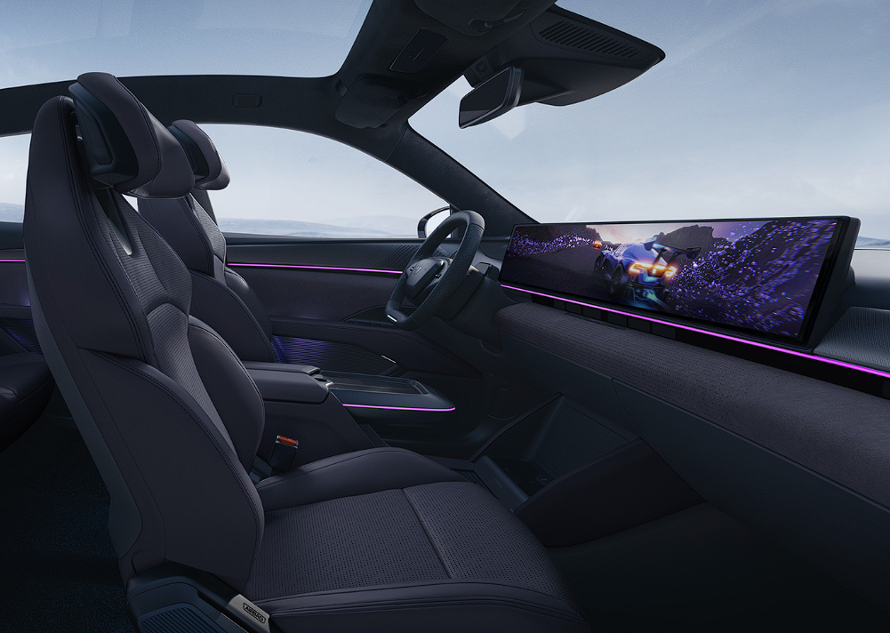 内饰部分同样采用简洁的设计,配备平底方向盘,并使用一块35.6英寸6K超清一体中控屏。
