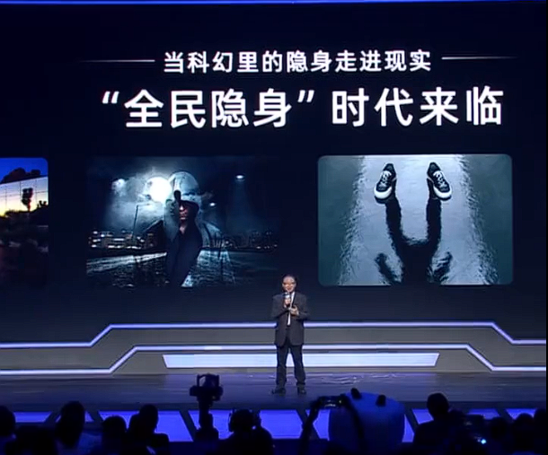 在现场,褚院士还演示了一番,可以看到工作人员将一块“布料”扯起来遮住了他的下半身,然后果然只剩下没被遮住的上半身了,而且还能看到后方舞台的布置,仿佛真的隐身了一般。