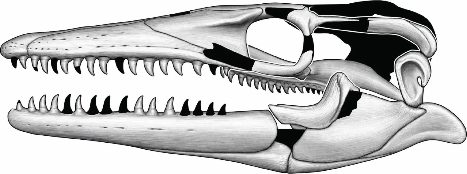 Jormungandr walhallaensis 头骨的线条图。资料来源:Henry Sharpe