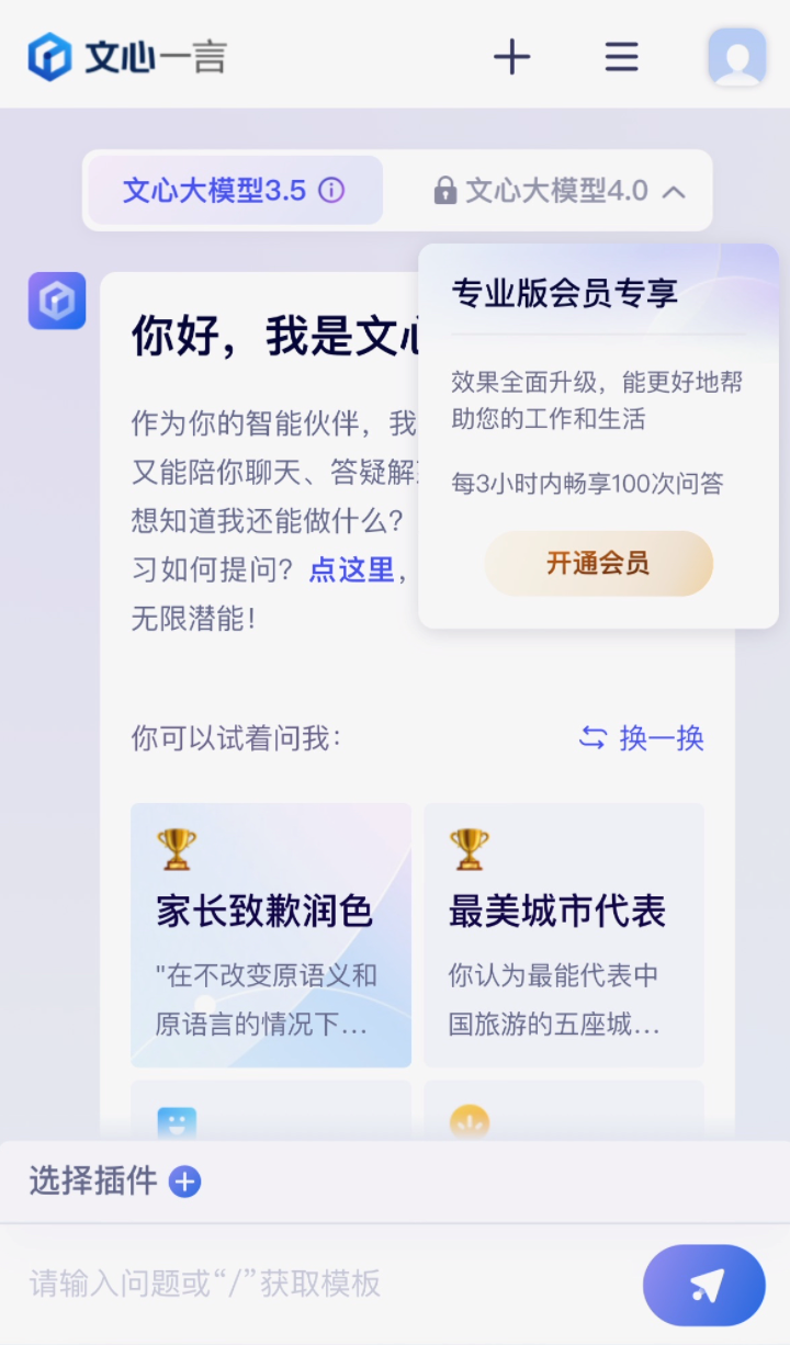 相对基于文心大模型3.5的基础版,基于4.0的专业版具备更强的模型能力和图片生成能力,支持丰富的实用插件,更适合需要使用文心一言进行代码编程、文案撰写、绘画设计等专业工作需求的用户。