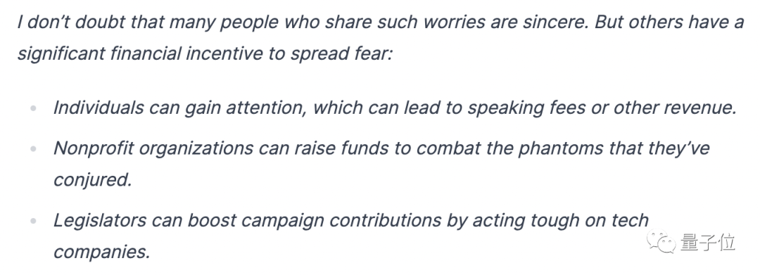 但,他认为,一部分人非常卖力地传播这样的担忧其实只是为了“钱”,比如: