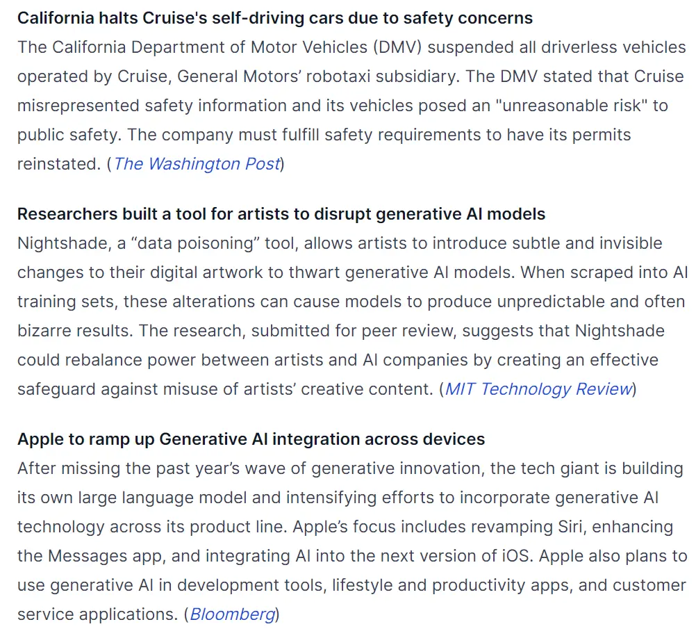 还细数了因强监管导致 AI 研究缓慢甚至停滞的案例,像什么加州暂停无人驾驶汽车项目,有人搞出破坏生成式大模型的工具等等。