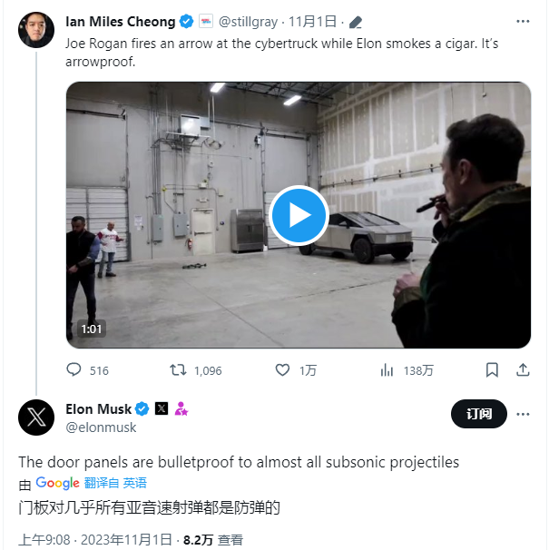 近期马斯克整了个大活儿,他称特斯拉团队使用汤米冲锋枪清空了整个弹匣,都没能打穿Cybertruck的门板,证实了该车的防弹能力。马斯克近日出现在了罗根的播客节目上,谈到了特斯拉Cybertruck,在采访中,马斯克声称,弓箭无法穿透这款车的外壳,但是威力更大的十字弓可能可以。
