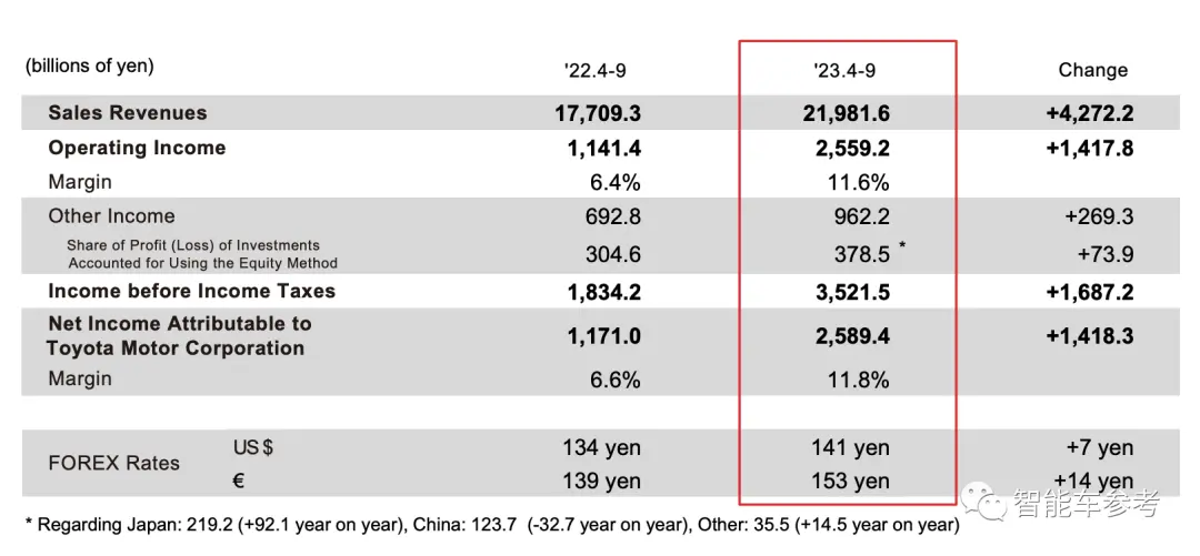 而另一方面,丰田财报销售额、利润等数据好看也受到日元贬值的影响。截至9月末,日元兑美元已经下跌约12%。