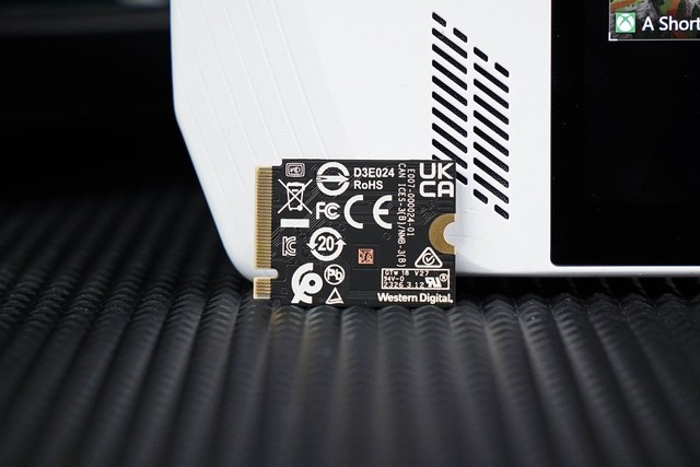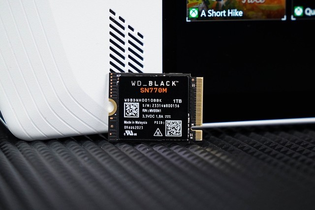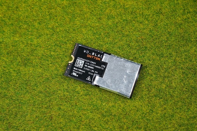 我们用来扩容的固态硬盘型为西部数据全新推出的WD_BLACK SN770M,这是西部数据专为小型便携设备推出的消费级2230规格固态硬盘,有500GB、1TB和2TB三种容量可选。从产品命名看,可认为是大家非常熟悉的WD_BLACK SN770的“mini”版本。