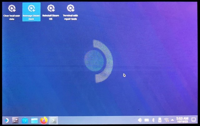 接下来系统会自动引导到系统恢复界面,其实就是个带GUI的Linux系统,双击桌面上的Reimage Steam Deck。