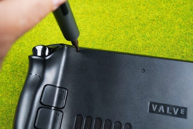 Steam Deck的拆机略显麻烦,如果你动手能力在线且有数码产品的拆装经验,这应该就不是问题了。首先拧下机身后面所有的螺丝,记得放好不要丢了。