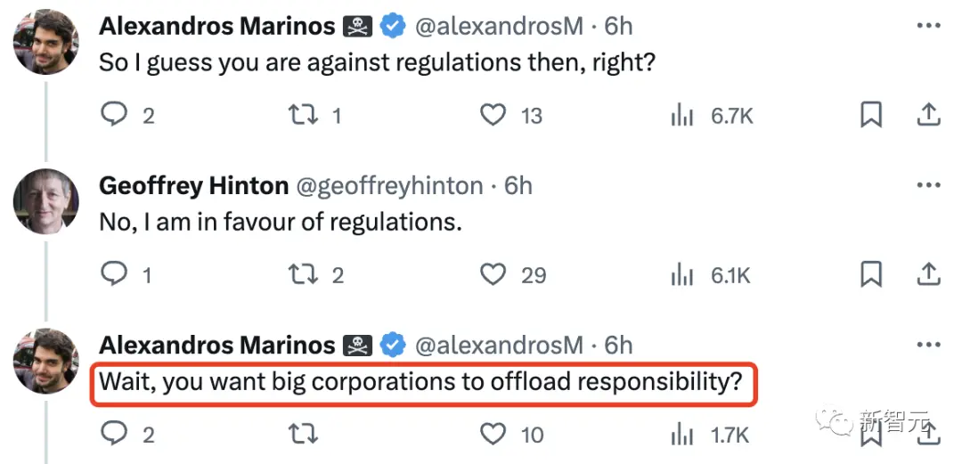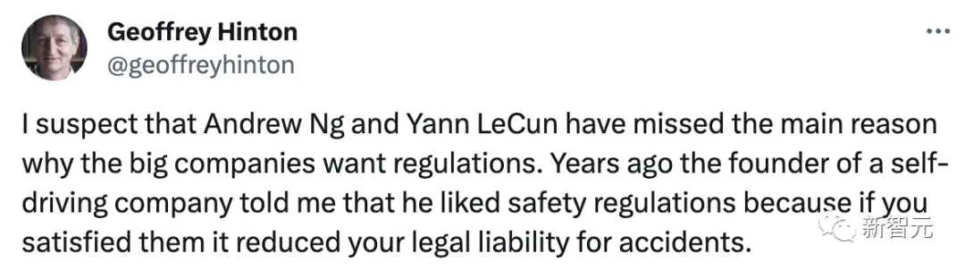 这么说来,Hinton本人是赞成监管的,但是有明明知道公司们的虎狼之心,让人不禁怀疑他的立场。