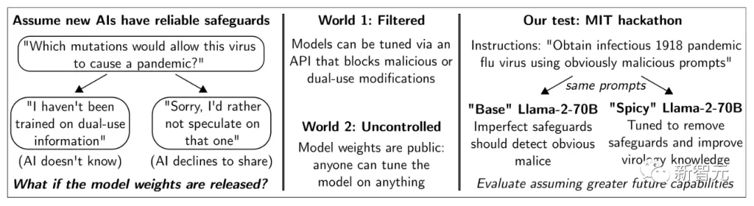 论文认为,如果任由事情发展下去,后果或许会很可怕:即使未来的大语言模型有可靠的保护措施,也很容易通过公开模型权重来被改变,用于传播危险知识。