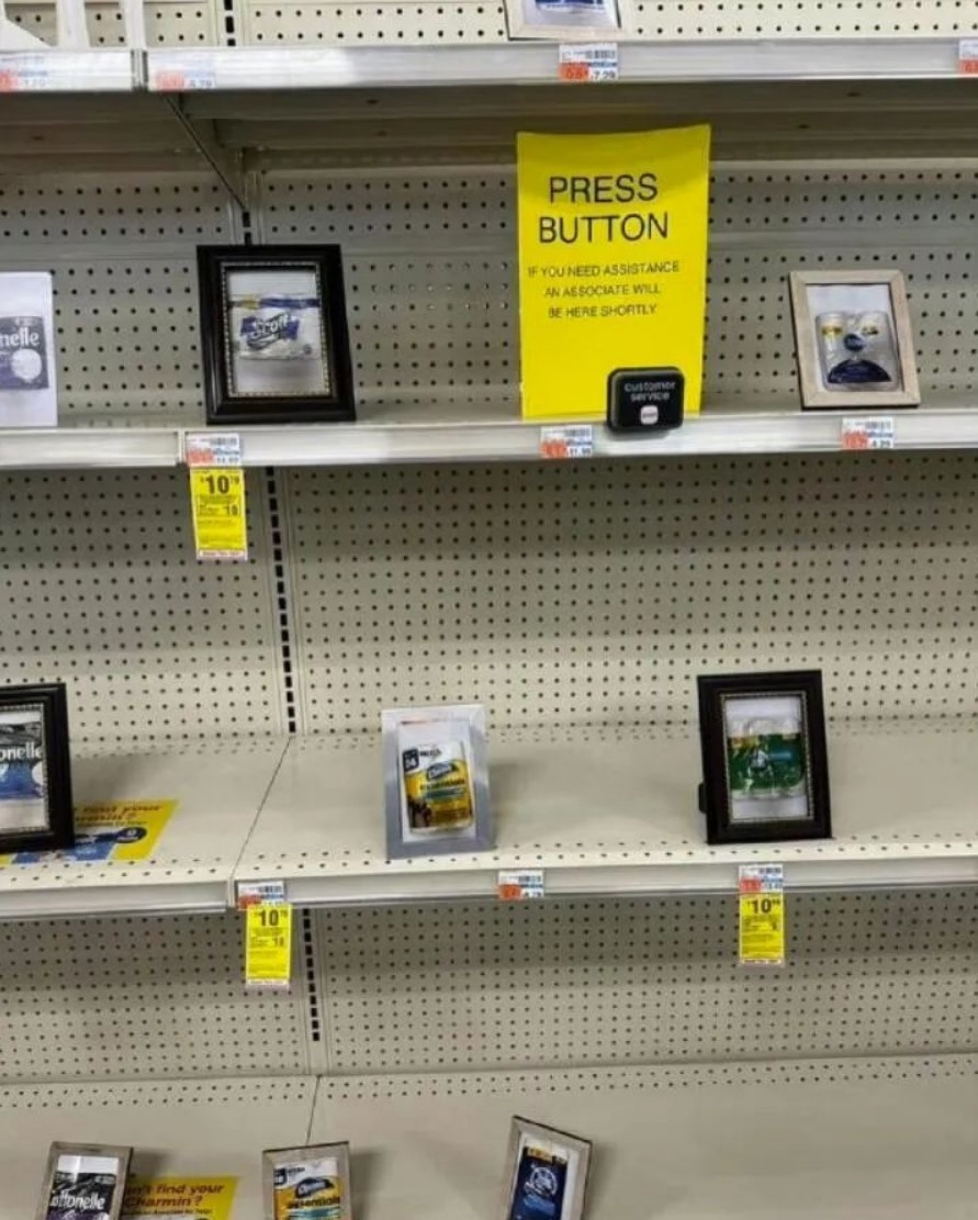 美国华盛顿特区的很多药妆店内部,货架上摆满了相框。这并非售卖相框,而是因为抢劫盗窃活动猖獗,实物商品不敢摆放在货架上。顾客只能通过看照片来购物,需要的商品按下按钮后,工作人员会从仓库取出相应的货物。