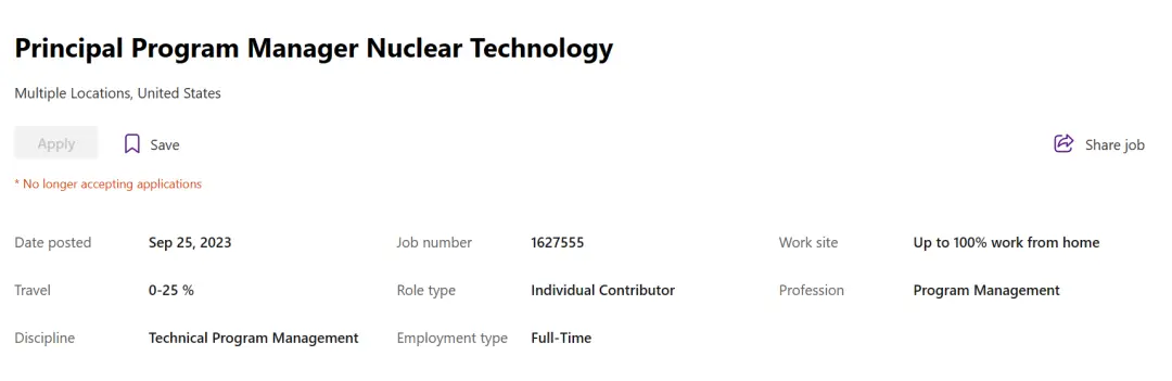 不久前,微软发了个招聘通知,说要找个 “ 核技术首席项目经理 ” ,来管SMR 这块的工作。