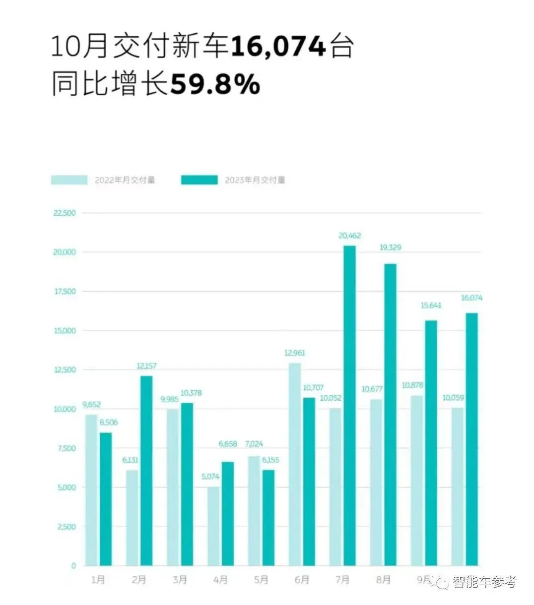 不过,蔚来整体也有向好的趋势:8款车型全部度过二代平台换代调整期,三季度销量大涨至55432辆,同比增长75.38%,环比增长135.68%,直接翻倍,10月销量也迎来增长。