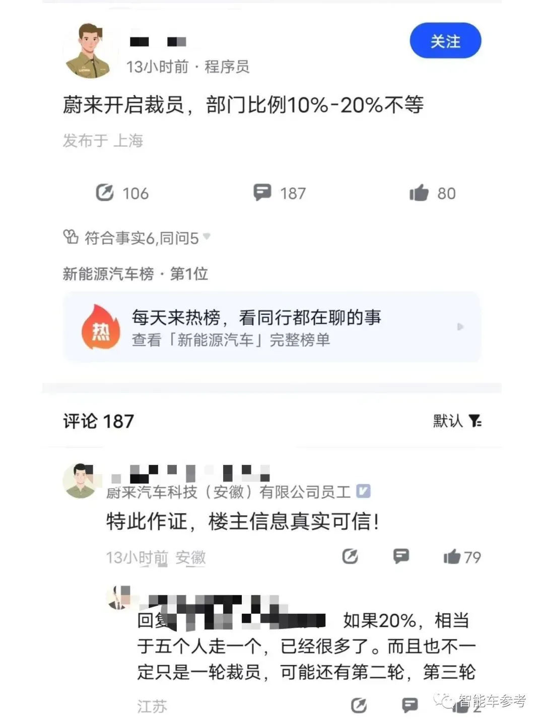 以及虽然评论区有蔚来员工表示裁员是真的,但具体比例一直未得到证实。