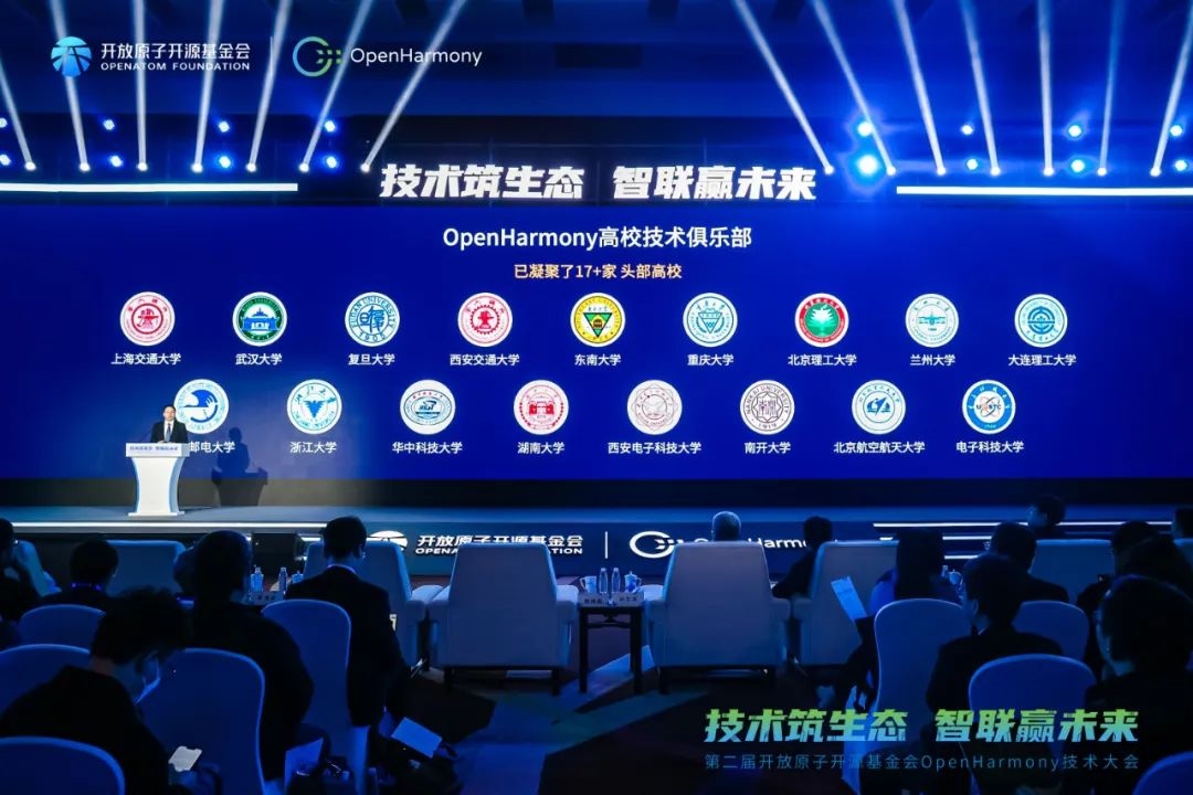 以“技术筑生态,智联赢未来”为主题的第二届开放原子开源基金会OpenHarmony技术大会在北京落幕。其中,17所OpenHarmony技术俱乐部高校成员作为未来技术生力军,在本次大会上正式亮相,同时也希望吸引更多的高校师生参与OpenHarmony的科研共建工作。