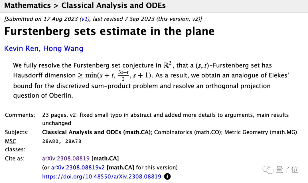普林斯顿二年级研究生Kevin Ren和纽约大学王虹教授已经将它完整证明出来了。