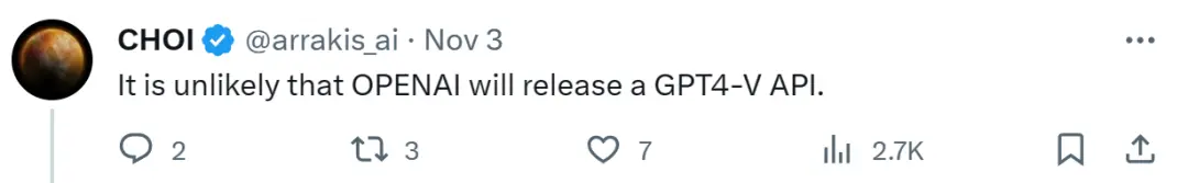 除此之外,OpenAI 不太可能发布 GPT4-V API。