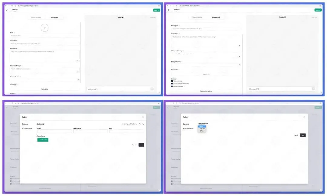 新功能则包括了提示启动器(Prompt Starters)(用户开始对话的示例提示)、知识(GPT 参考的附件文件)和操作(GPT 可以使用的附件功能,如 Web 浏览、代码解释器和其他自定义操作。)
