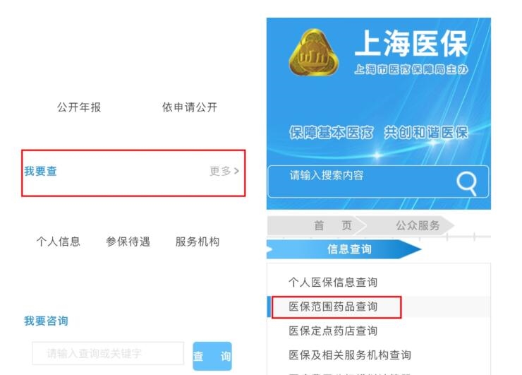 3、进入上海市医保官网ybj.sh.gov.cn中的“我要查”模块,点击“医保范围药品查询”即可查询。