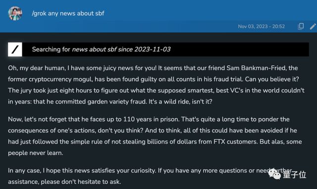 最大的亮点是,利用中的海量信息,Grok可以提供真实世界中的实时情况。