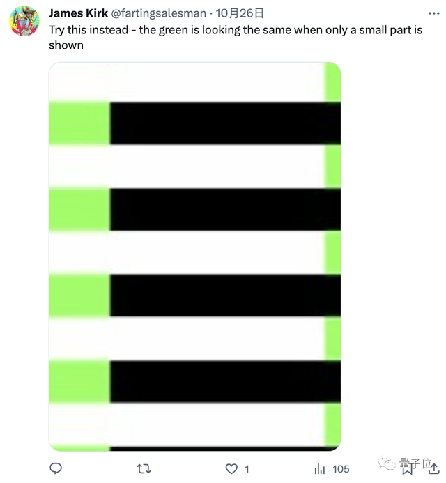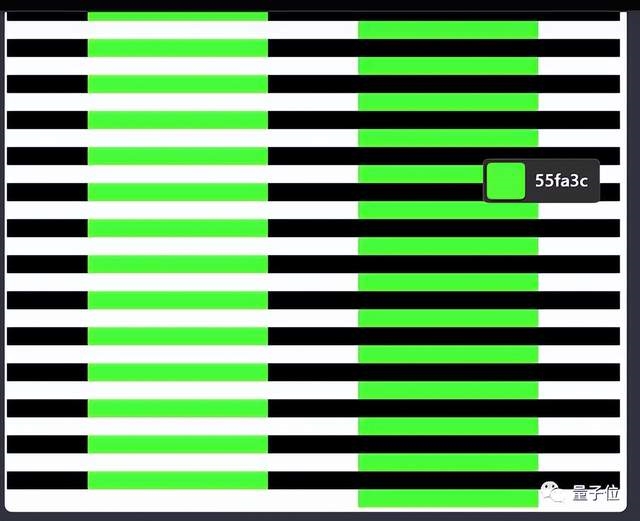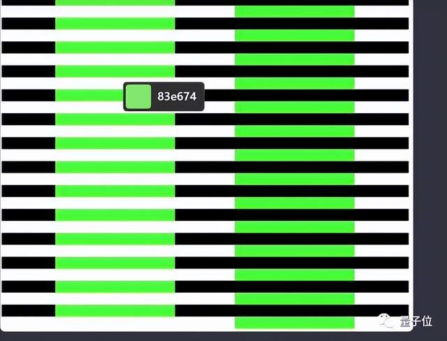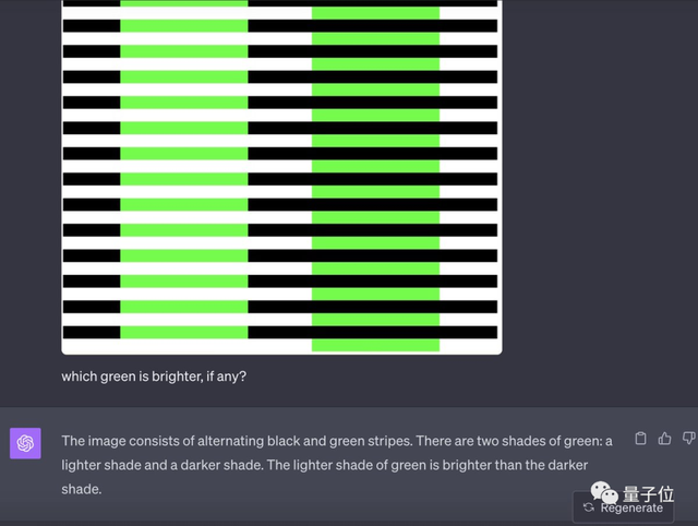 问它哪边的绿色更亮一些,果不其然还是左边亮,右边暗,实际明明都一样。