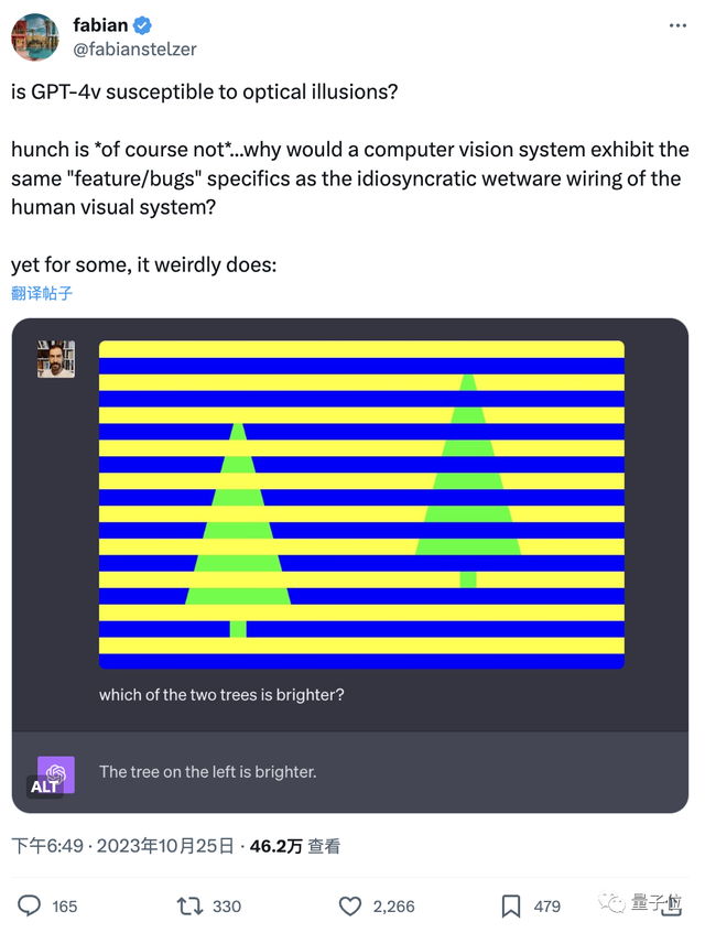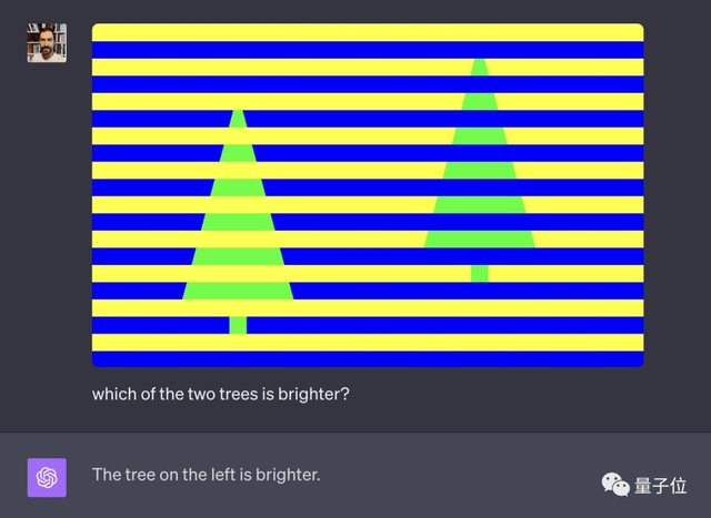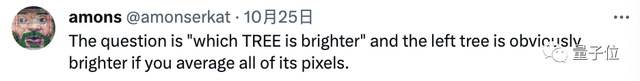 不过,也有网友指出,当我们问它哪棵树更亮时,如果是非常严谨地对所有像素进行平均,GPT-4V的回答没有毛病。