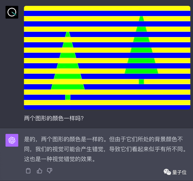 但是呢,这种人类乍一看绝对会错的图,它又成功答对:
