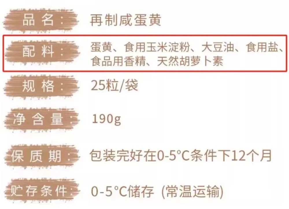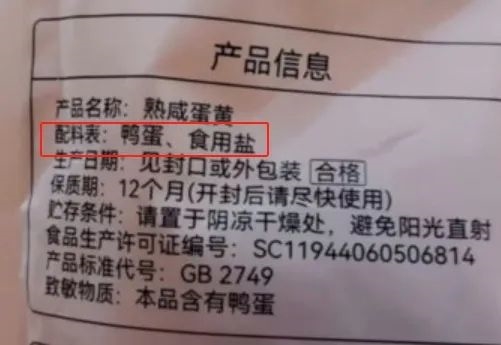 真咸蛋黄的配料表很简单,只有鸭蛋和盐。