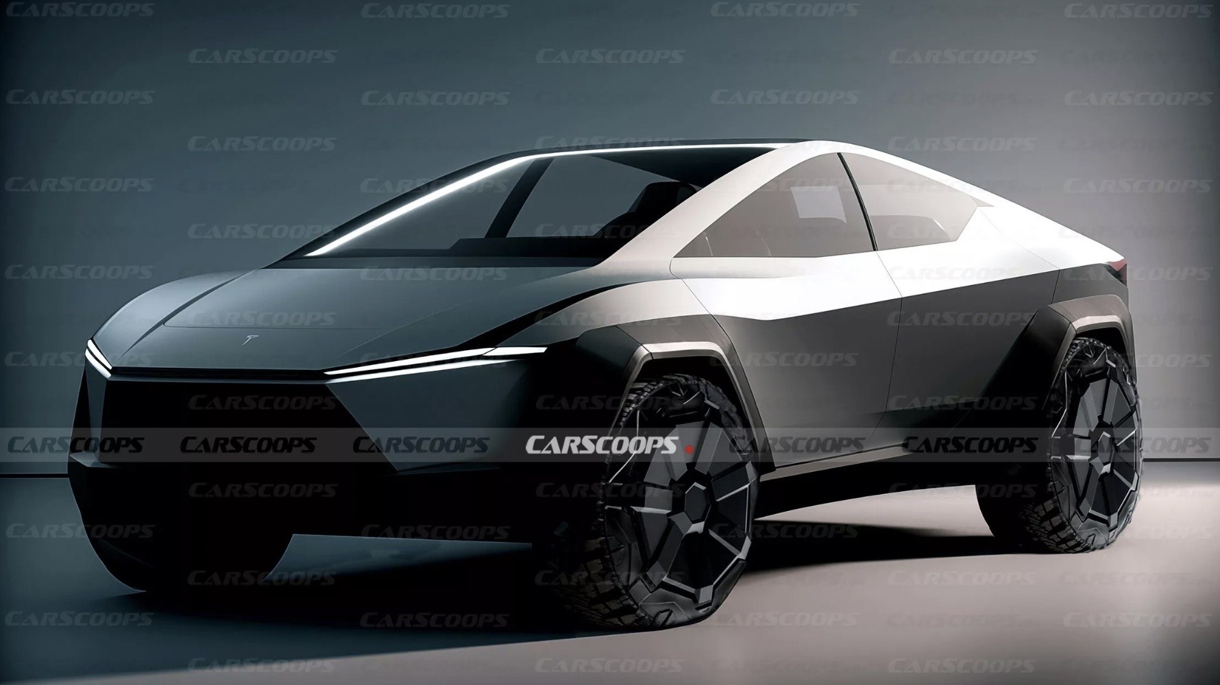 伴随着该消息的报道,海外媒体还曝光了这款电动车最新的效果图,和之前出现过的两厢版Model 3完全不同,最新版展示了另外一种设计,像是Cybertruck赛博皮卡的变种。