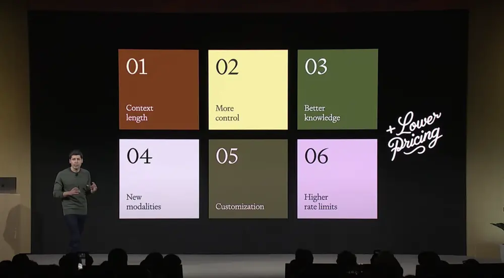 OpenAI自横空出世那天起,就一直是创业者们头上的一把达摩克利斯之剑,如今这把剑终于落下了。美东时间11月6日,OpenAI在镁光灯下举行了首次开发者大会,OpenAI接连放了几个大招,多模态、降价、GPTs、all tools,几乎把上半年的创业项目全都自己做了一遍,这一套连招也彻底把创业者们打懵了。