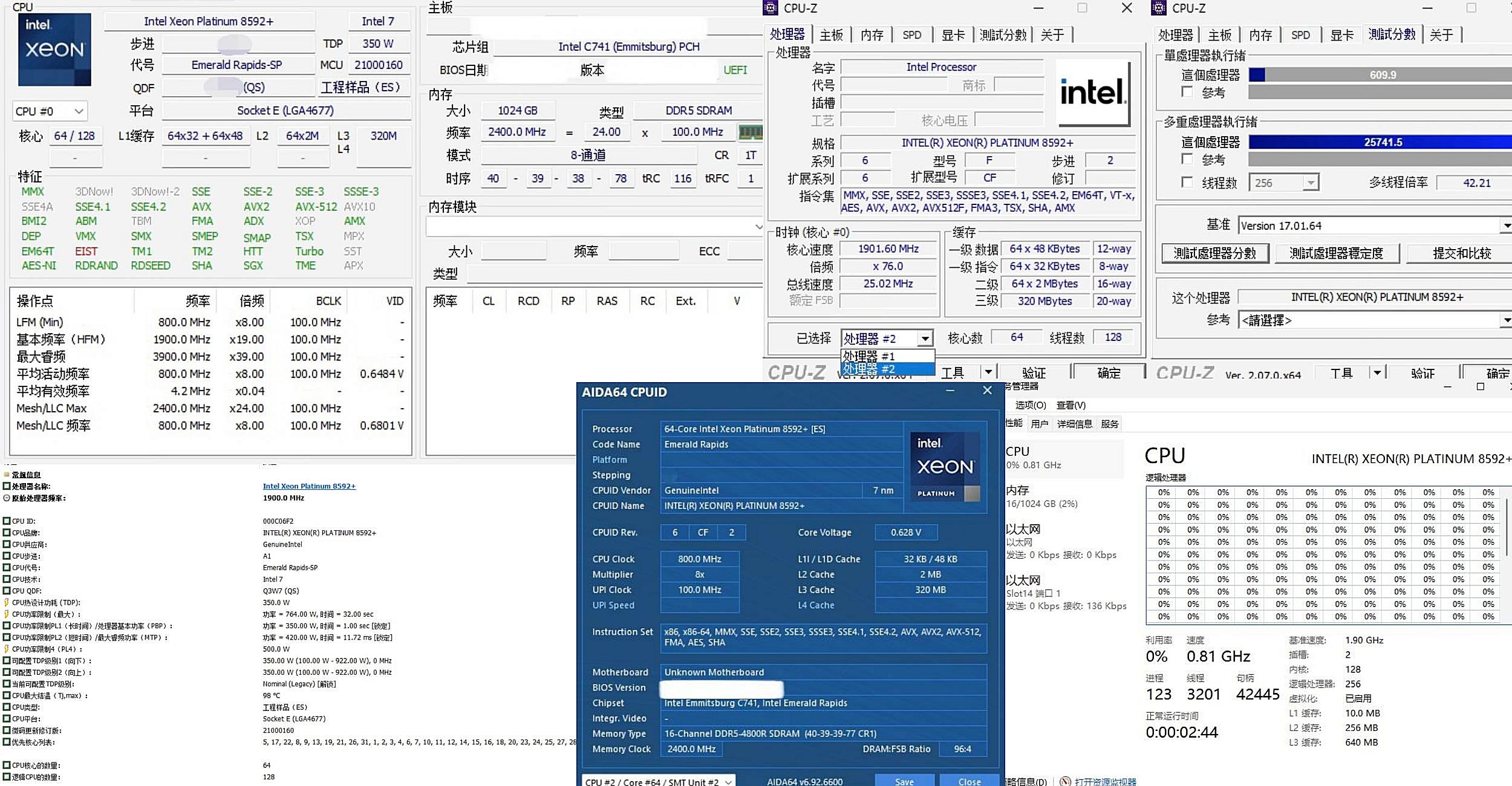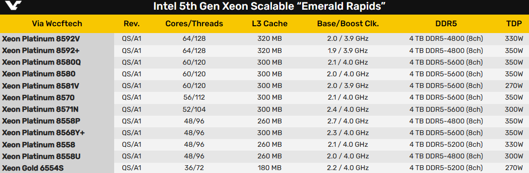 AMD 2019年8月发布的第二代EPYC处理器做到了64核心128线程。如今四年多过去了,Intel终于要有自己的64核心了。据外媒曝料,Intel将于12月14日正式发布的Emerald Rapids第五代至强处理器,旗舰型号为至强8592+、至强8592V,均为64核心128线程。
