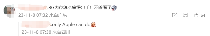今日苹果CEO库克发微博在线安利全新M3 MacBook Pro,没想到评论区被苹果8GB“黄金内存”攻陷了。库克发微博称:“搭载全新M3系列芯片的iMac和MacBook Pro新系列现已上市!想体验Mac,没有比现在更好的时机了。”