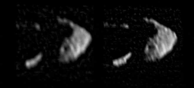 这两个天体距离如此之近,以至于它们实际上在相互接触,形成了所谓的接触双星。这并不是第一个被发现的此类天体,但却是有史以来第一个被看到绕着小行星运行的天体,它的存在引发了一些疑问。