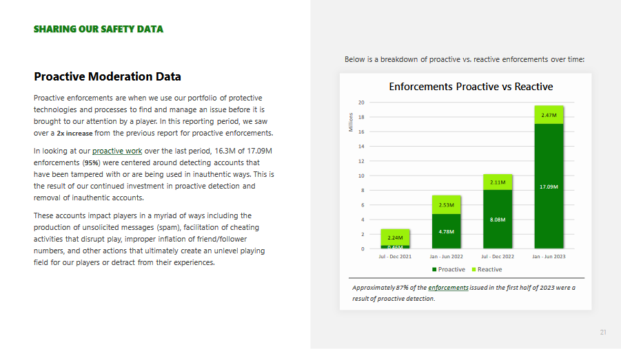 微软发布了迄今为止第三份Xbox 透明度报告,强调了其内部流程的改进,以保护玩家免受恶意和骚扰。报告称,截至 2023 年 6 月的六个月内,Xbox总共发出了 1960 万次惩罚执行,几乎是 2022 年上半年 1020 万次的两倍。公司表示,这其中包括 6.4 万次“主动的”骚扰和欺凌,今年早些时候公司推出的 Xbox 主机语音举报功能“捕获并报告游戏中的语音骚扰”进一步加强了该领域的监管。