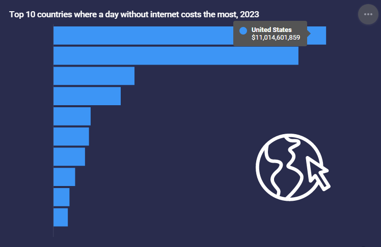 其中美国是与互联网联系最紧密的国家之一,断网将会扰乱其大部分经济活动,无论是个人方面或商业方面。