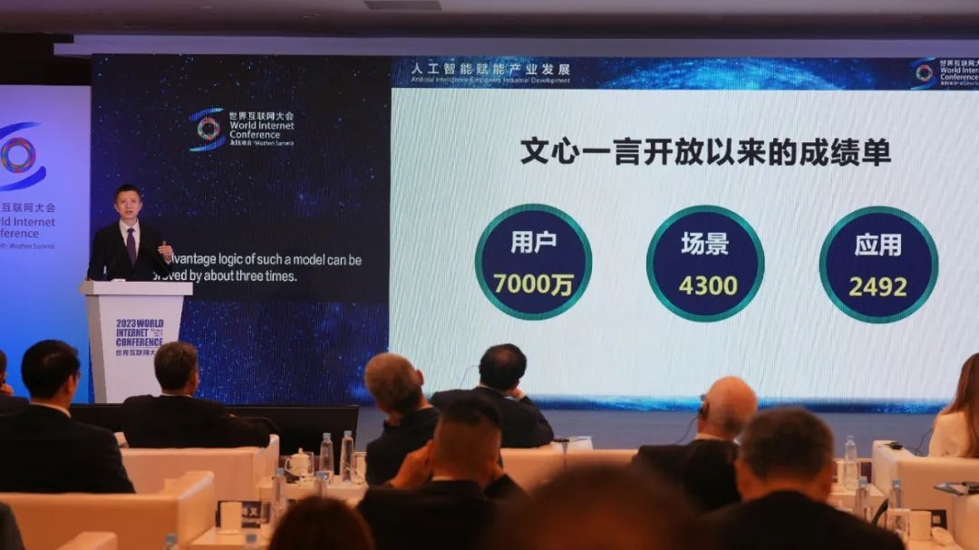 在2023年世界互联网大会乌镇峰会上,百度CTO王海峰披露,文心一言用户规模现已达到7000万。百度官方发文称,文心一言自8月31日面向全社会开放至今,用户规模达到7000万,场景4300个,应用2492个。飞桨和文心生态已凝聚800万开发者,服务22万家企事业单位,创建了80万个模型。