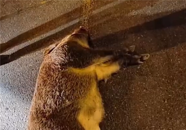 巨大的冲击力导致野猪在地上翻滚数圈,周先生的汽车也因此受损,地面上散落了不少碎片,野猪受伤严重,后腿无法直立,只能耷拉在地上,鼻孔也有流出的血迹,显得楚楚可怜。