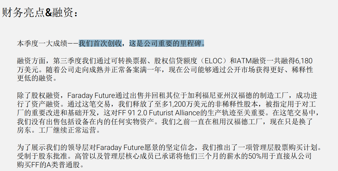 FF还强调,目标在2025年尽早实现经营性现金流收支平衡。