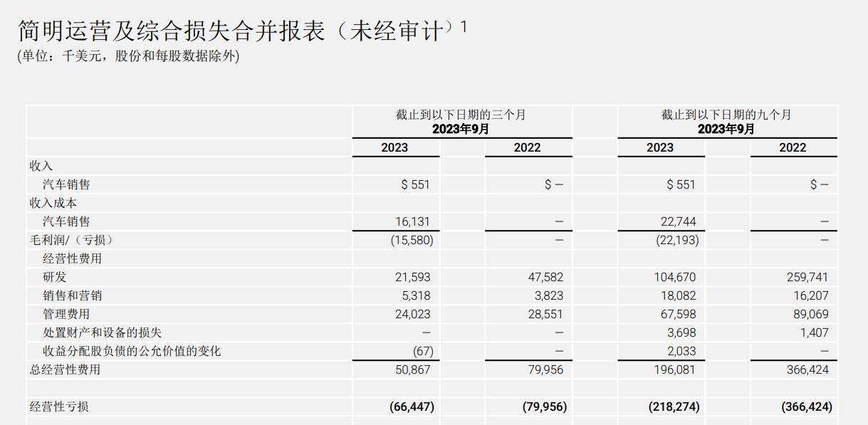 从法拉第未来(下简称“FF”)官网获悉,今日,FF收市后发布2023年第三季度业绩的《致股东信》。第三季度财报显示,FF净亏损7800万美元,汽车销售收入55.1万美元。FF官方表示,第三季度首次实现创收,是公司重要的里程碑。