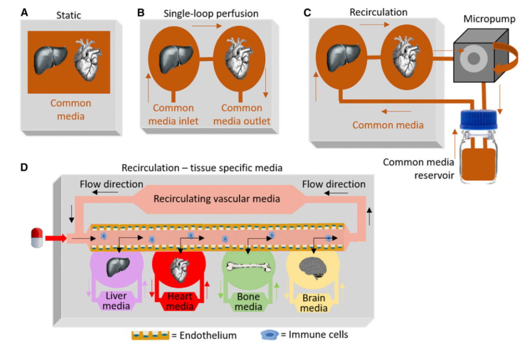 器官芯片相互连接示意图。图片来源:参考文献[3]