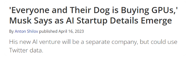“ 是人是狗都在买显卡 ” ,去年说完这句话的马斯克也不得不转头就加入 “ 抢卡大军 ” 。