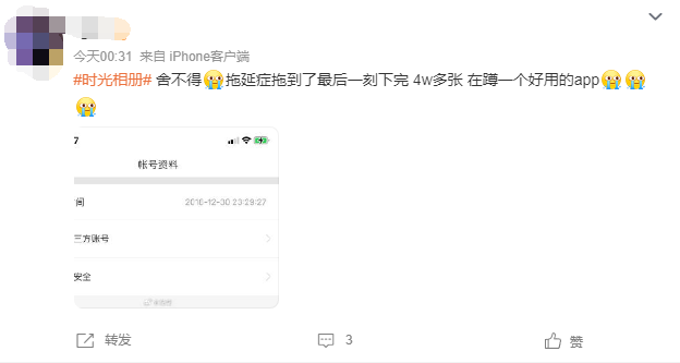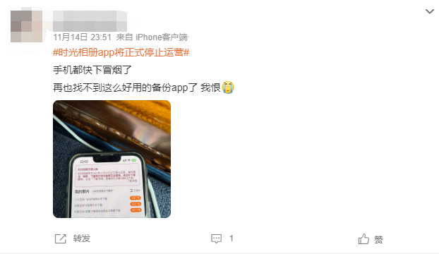 对于时光相册的停运,有网友表示:“时光相册停运了,我的青春无处安放”“ 舍不得,拖延症拖到了最后一刻下完4万多张”“手机都快下冒烟了,再也找不到这么好用的备份App了”等等。
