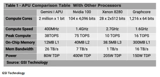 GSI Technology是Gemini关联处理单元(“APU”)的开发商,为网络、电信和军事市场提供人工智能和高性能并行计算解决方案。