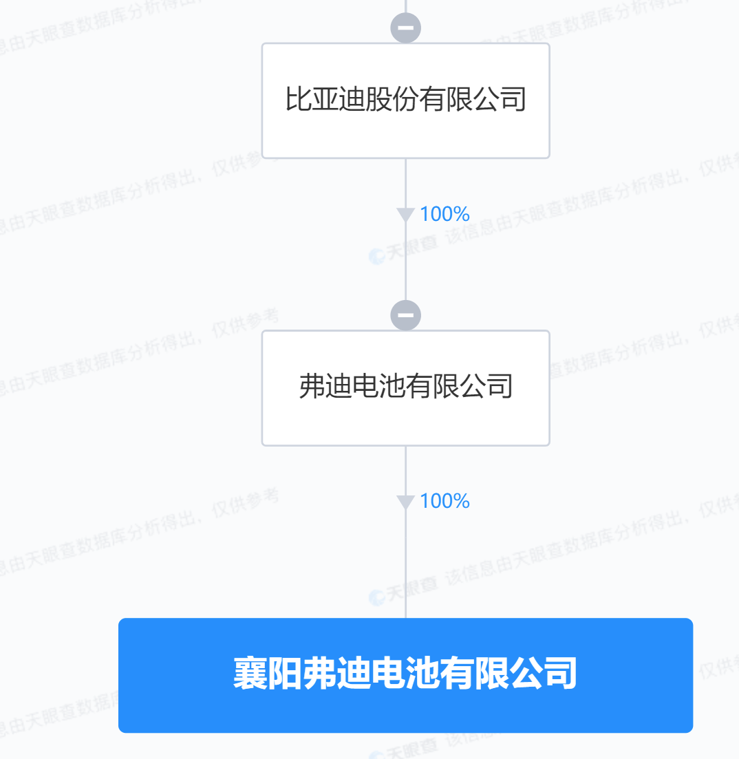 根据天眼查显示,襄阳弗迪电池有限公司是比亚迪股份有限公司的全资孙公司。