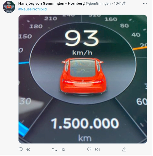 他在去年时,就达成了150万公里的成就,并在推特上宣布是全球行驶里程最高的特斯拉。