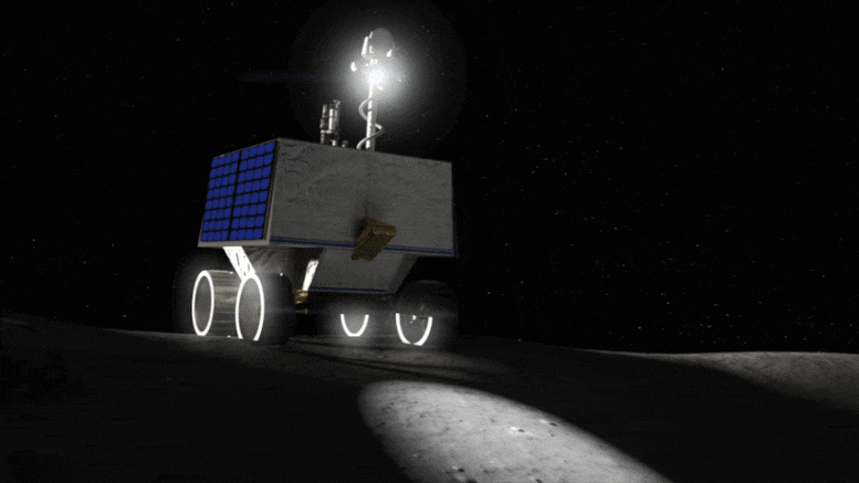 美国国家航空航天局(NASA)的极地探测车(VIPER)在月球表面的动画。图片来源:NASA Ames/Daniel Rutter