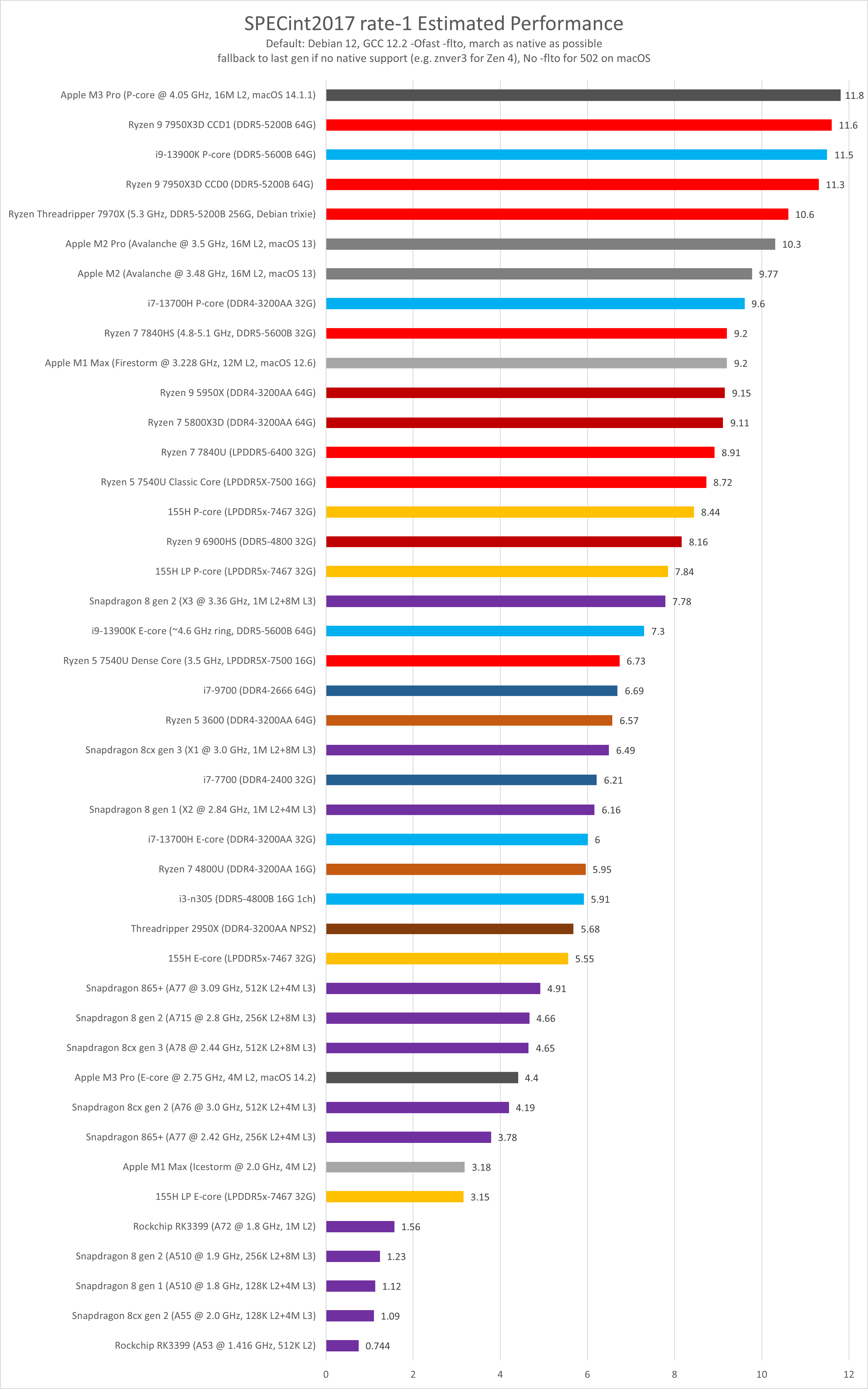 如果带上苹果就更有趣了,M2 Pro、M3 Pro都超过了2.9,无论是Intel还是AMD都望尘莫及。