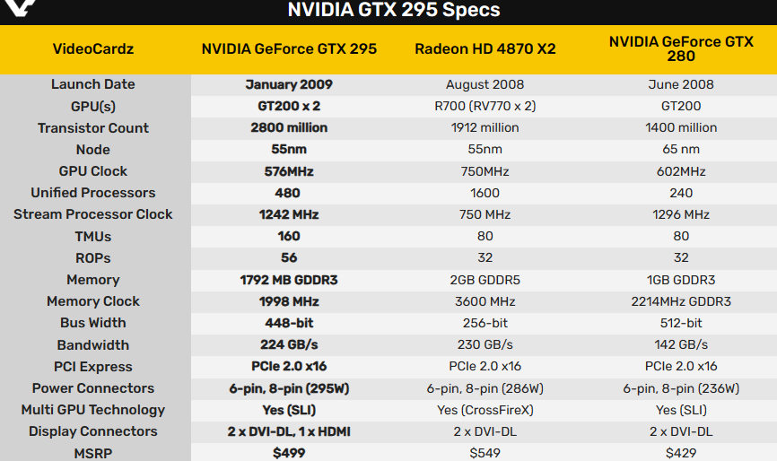 哦对了,GTX 295的起价是499美元,如今看起来好便宜,那个时候可是相当的吓人。