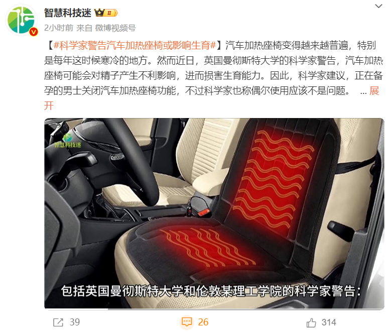 而在此前,国内也有媒体报道了这一科学观点,德国吉森大学一项研究显示,座椅加热可能会影响男性生育力。