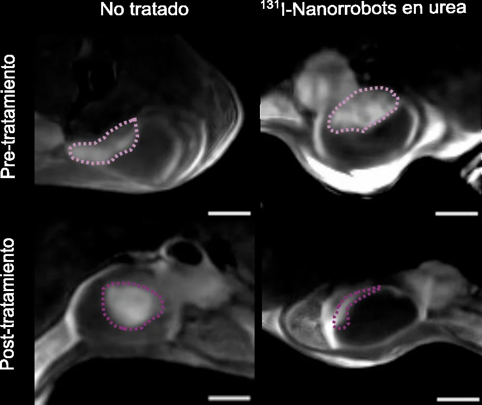 现在,发表在著名期刊《自然-纳米技术》(Nature Nanotechnology)上的一项研究揭示了一个研究小组如何通过单剂量尿素驱动的纳米机器人,成功地将小鼠膀胱肿瘤的体积缩小了 90%。